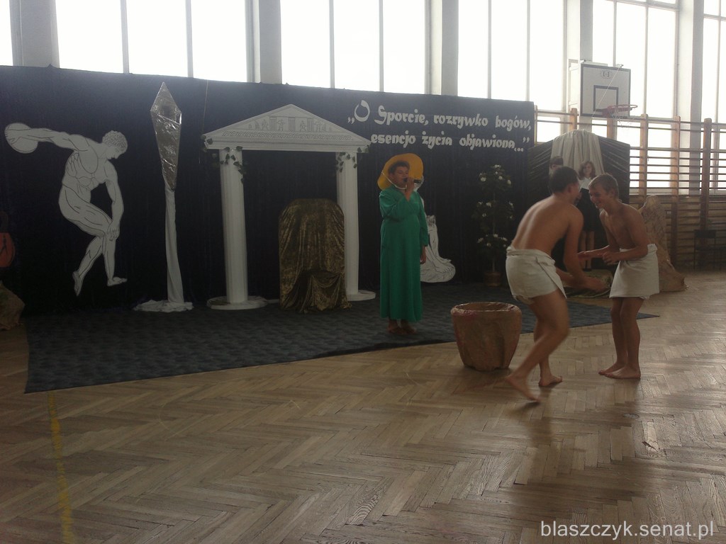 Senator Błaszczyk z ogromnym zainteresowaniem przyglądał się przedstawieniu artystycznemu, które zostałe przygotowane przez Uczniów szkoły podstawowej oraz gimnazjum w Witoni. Młodzież w swoim przedstawieniu przeniosła się do czasów starożytnych, a konkretniej do roku 776 p.n.e. kiedy to odbyły się pierwsze Igrzyska Olimpijskie. Widzowie mogli zobaczyć jak przebiegały igrzyska oraz zapoznać się z dyscyplinami jakie uprawiali tamci sportowcy. Po występach zaproszeni goście udali się na obiad, a pozostali widzowie przenieśli się na boisko, gdzie miał miejsce główny punkt uroczystości - pokazowy mecz piłki nożnej pomiędzy drużyną Sportowej Łodzi, a Witonianką Witonia.