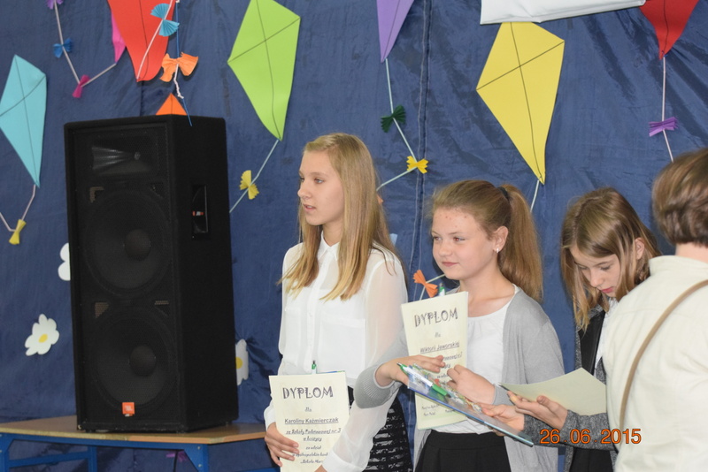 Równolegle odbywało się zakończenie w Zespole Szkół im. Jadwigi Grodzkiej, na którym zostały rozdane, jak co roku nagrody za najlepsze wyniki w nauce. Senator RP Przemysław Błaszczyk nie mógł być tam osobiście , dlatego w jego imieniu głos zabrała Sylwia Prażnowska.