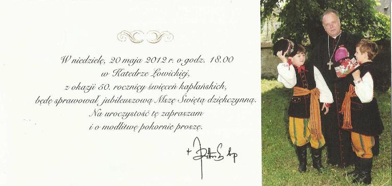 Złoty Jubileusz święceń kapłańskich obchodził J.E. Ksiądz Biskup Józef Zawitkowski. W niedzielę, 20 maja 1962 r. o godzinie 10.00 w Archikatedrze Warszawskiej Jego Ekscelencja Ksiądz Biskup Józef Zawitkowski przyjął święcenia kapłańskie z rąk Jego Eminencji kard. Stefana Wyszyńskiego.